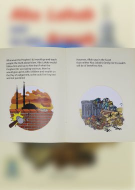 This book tells the true story of Abu Lahab and his wife Arwah in an easy way that kids can understand and enjoy. It starts with Surah Al Masad. It explains Abu Lahab’s relation to Prophet Muhammad ﷺ as his uncle. It shows the difficulties the Prophet ﷺ faced because of him. It also covers how Arwah tried to stop Islam and hurt the Prophet ﷺ in different ways. Everything is taken from the Quran and authentic sources, no made-up parts. Written by Shazia Nazlee.