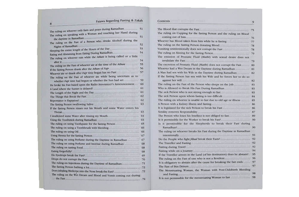 Fatawa Regarding Fasting and Zakah by Muhammad bin Abdul Aziz Al‑Musnad is a comprehensive English reference compiling 215 authentic fatawa (legal rulings and answers) on everyday issues related to fasting and zakah based on the Qur’an and Sunnah. Drawn from the verdicts of respected scholars such as Shaykh Abdul Aziz bin Abdullah bin Baz, Shaykh Muhammad bin Salih Al‑Uthaymin, and Shaykh Abdullah bin Abdur‑Rahman Al‑Jibreen, this book answers real‑world questions that Muslims commonly face in fulfilling these core acts of worship. It covers topics ranging from validity and conditions of fasting, missed fasts, women-specific issues, and social dealings while fasting to who must pay zakah, how much to pay, nisab calculations, zakah on different types of wealth, and rightful recipients. The explanations are structured to make complex jurisprudential issues understandable and applicable for both beginners and advanced students.