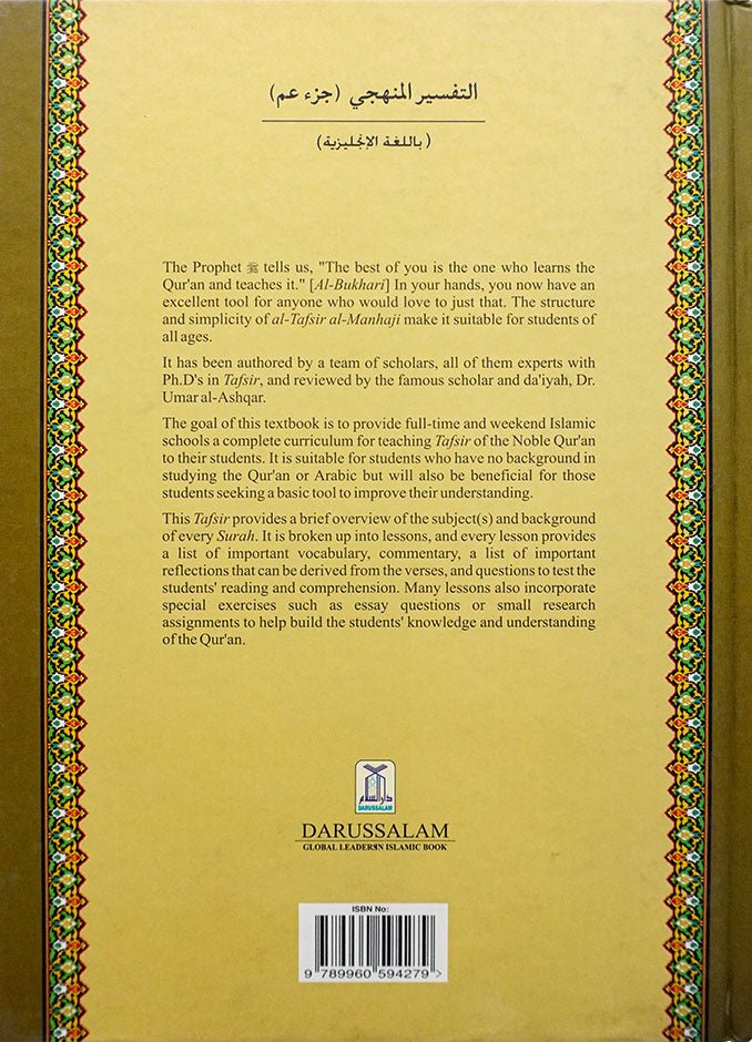 Methodical Interpretation of the Noble Quran – Part 30 (Tafsir Manhaji) by Dr. Ahmad Nawfal is an English Tafsir (Qur’anic commentary) focused on the 30th Para (Juz Amma) of the Noble Qur’an, designed to help learners understand the meanings, lessons, vocabulary, and themes of the final chapters in a structured, educational format. This book is part of the Tafsir al‑Manhaji (Methodical Interpretation) series, which was prepared by a team of scholars with advanced expertise in Qur’anic exegesis and reviewed by scholars such as Dr. Umar al‑Ashqar, to ensure authentic, clear, and reliable explanations suitable for both new students and more advanced readers. It breaks down the text into manageable lessons with vocabulary lists, commentary, reflections, and comprehension questions, making it useful for self‑study, classrooms, and structured Qur’anic study circles.