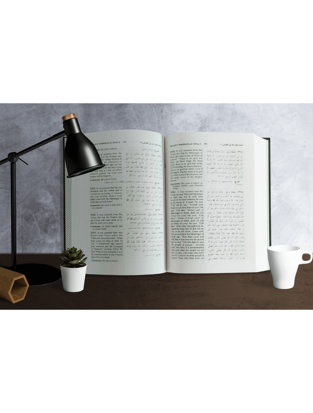3-volume set, ~1,841 pages total. 14×21 cm hardcovers, 1-color print. Darussalam’s edition: Arabic hadith with side-by-side English translation (Nasiruddin al-Khattab) and authenticity comments; wide margins for notes, clean layout, green covers with gold embossing.