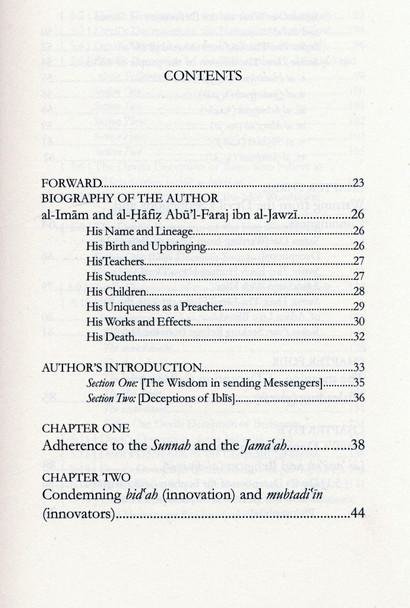 This book, published by Dar as-Sunnah, is of the illustrious Imam, Abu’l-Faraj Ibn Jawzi. Being a complete translation of his well-known and prized work Ibn Jawzi enumerates within it, many of the mechanisms and modus operandi used by the devil in deceiving and leading mankind away from the Straight Path.